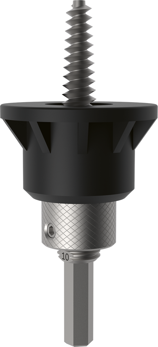 Dübelix auf Akkuschrauber aufsetzen, zum Fixieren die Schraube mit dem Sechskantschlüssel festdrehen