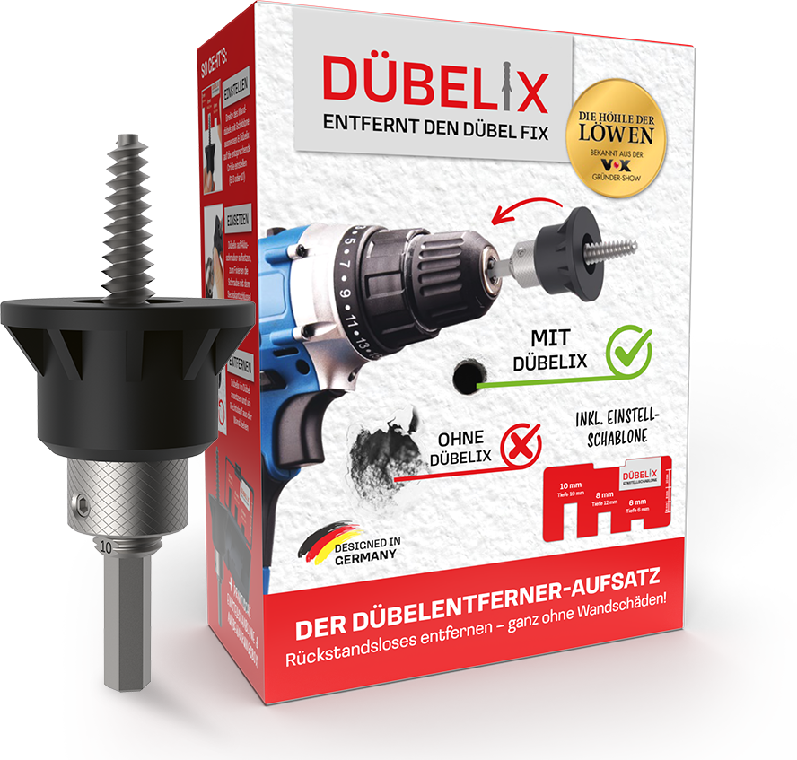 Dübelix im Dübel ansetzen und via Rechtslauf aus der Wand ziehen