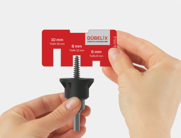 Breite des Wanddübels mit Schablone ausmessen & Dübelix auf die entsprechende Größe einstellen (6, 8 oder 10)